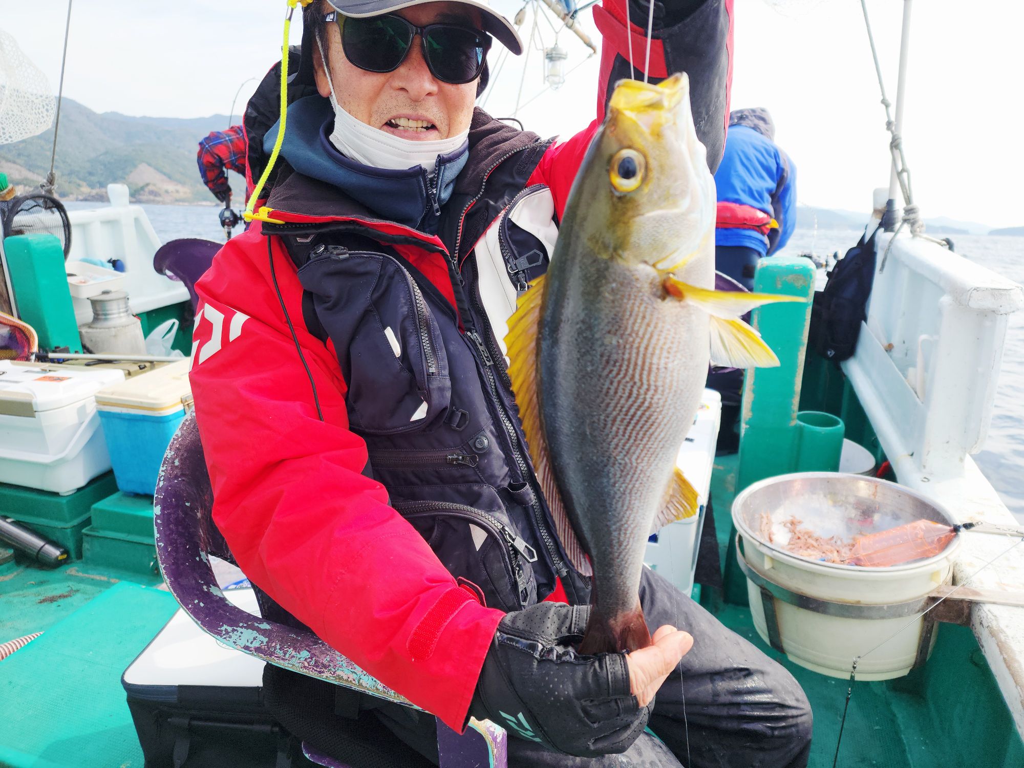 奈良県、西井さんら 船中で。