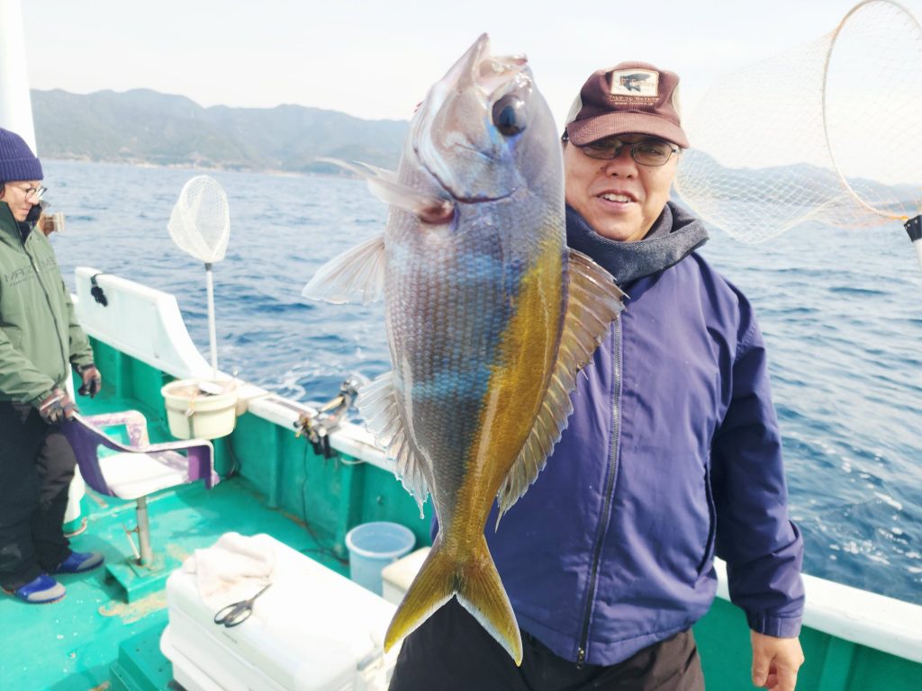 超 激渋のなか、貴重な尾長グレです❗(+_+) 浦上さん。